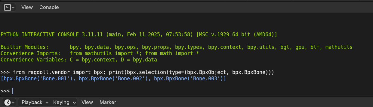 from ragdoll.vendor import bpx; print(bpx.selection(type=(bpx.BpxObject, bpx.BpxBone)))