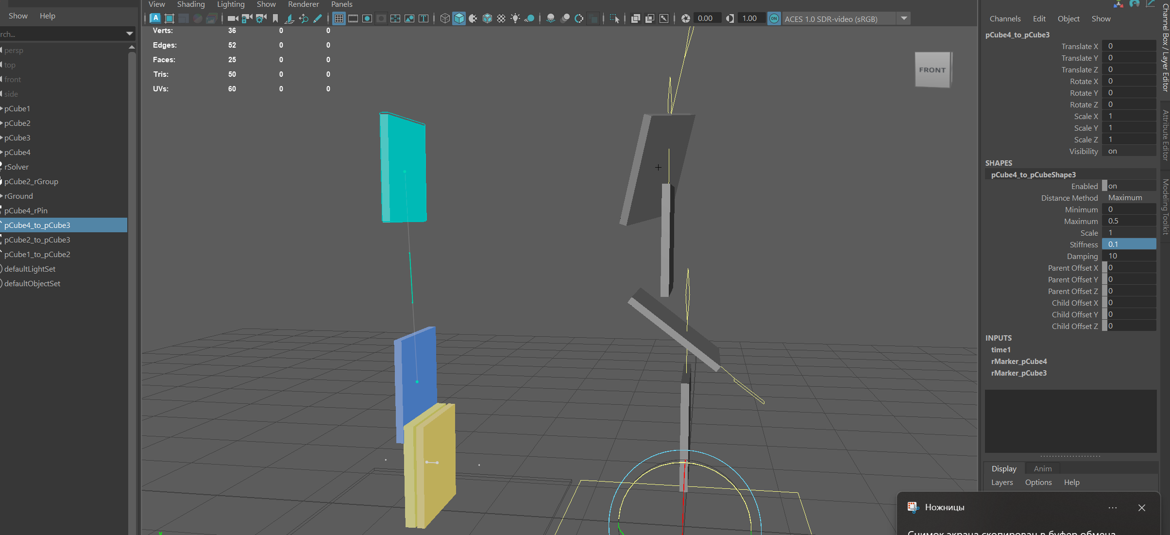 I know that there are 2 settings, these are Animated and Simulation, and I realized that if the legs are not simulated, then I choose Animated, I created capsules from joint, and the protection itself has an unusual shape, so I created it through geometry. Screenshot 2