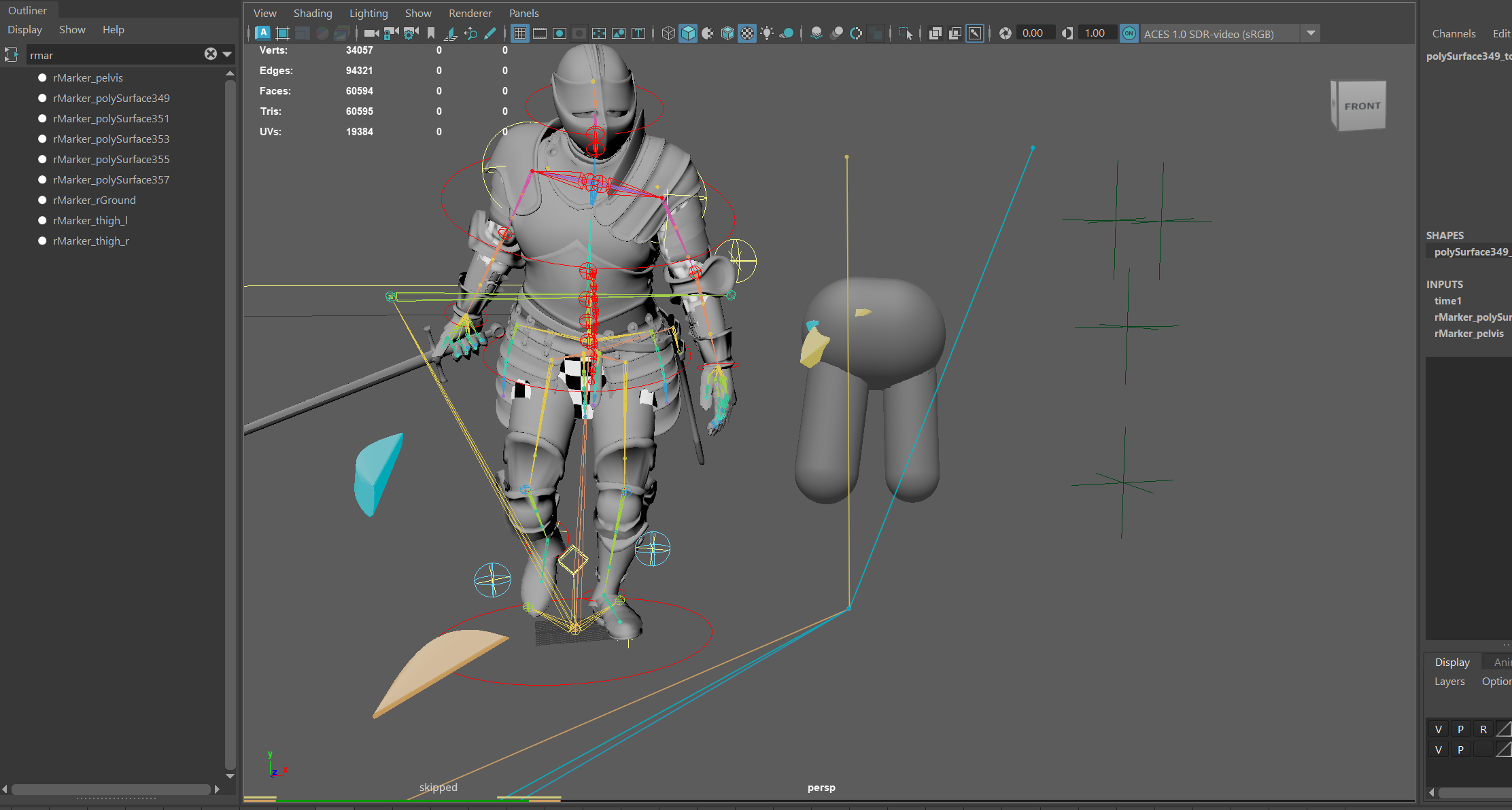 I have a model of a knight in which I want to recreate the physics of some parts.