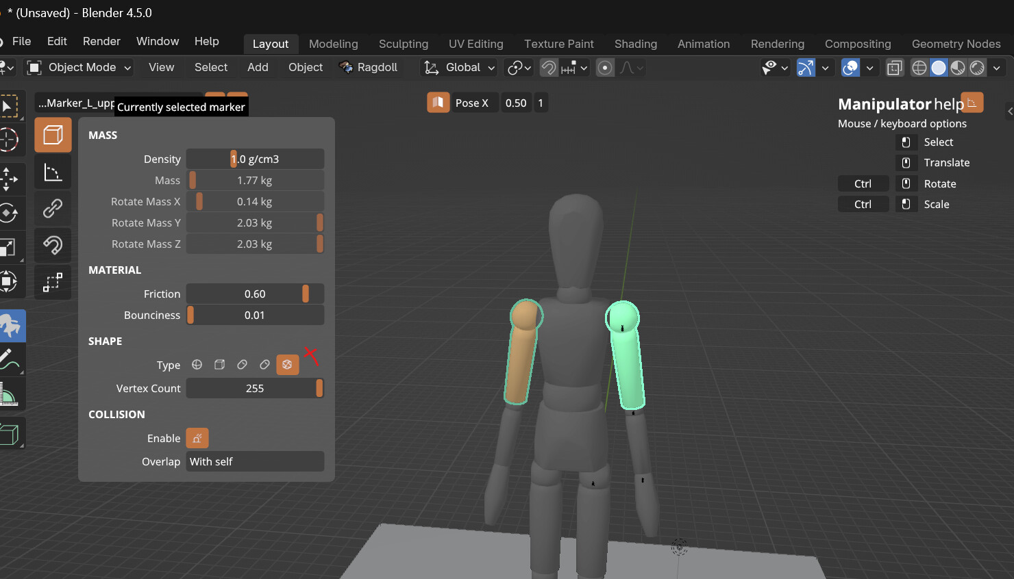 Well i loaded the Manakin blender fire, and followed the blender tutorial until i got to the part where you edit the shapes of the markers. Once i reached the part where you have to rotate, the marker stays still and doesn’t move.